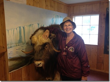 This afternoon we toured a Musk Ox Farm. There we heard the story of the repopulation of these critters after they had been wiped out by overhunting. What they lack in beauty the make up for in fill in the blank !